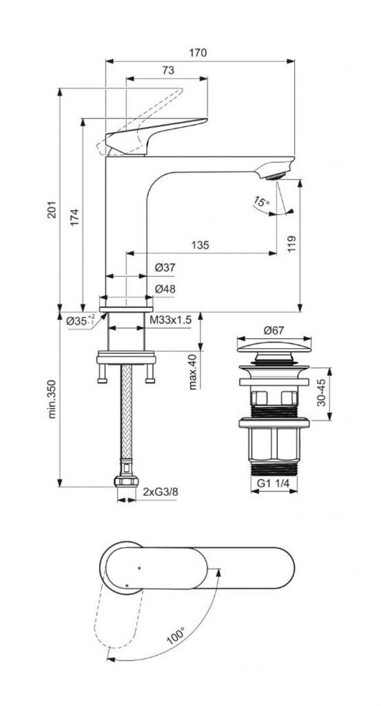 Umyvadlová stojánková baterie s Click‑Clack odtokem
