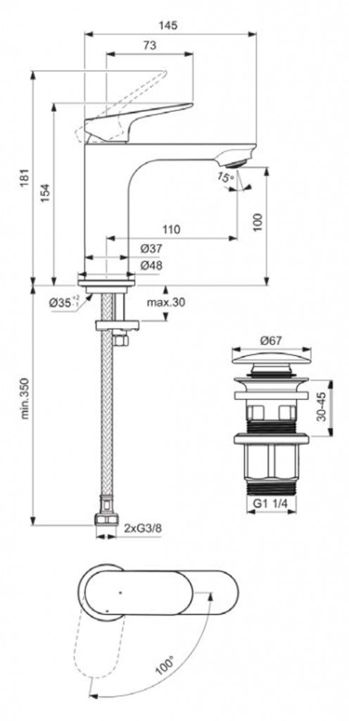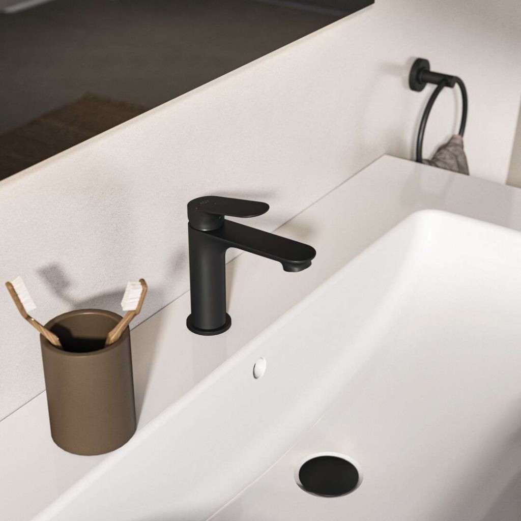 - BlueStart - ovládací páka je ve středové poloze a teče pouze studená voda, otáčením doleva přidáváme teplou vodu