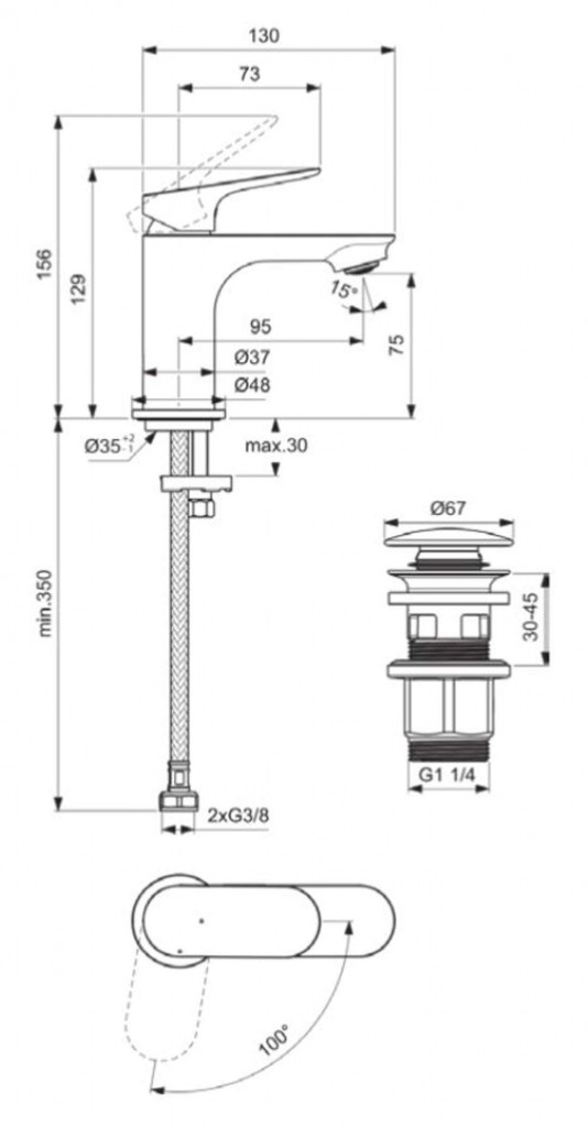 - BlueStart - ovládací páka je ve středové poloze a teče pouze studená voda, otáčením doleva přidáváme teplou vodu