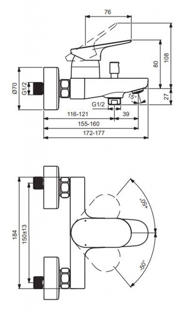 - pákové ovládání (úhel otočení 50° do obou stran) s červeným a modrým indikátorem