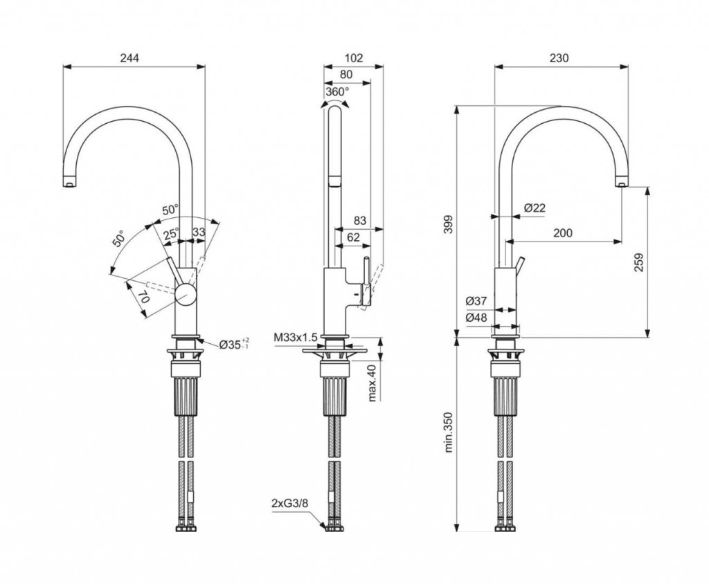 - 2x flexi hadičky G 3/8“