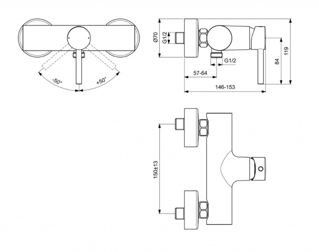 Páková sprchová baterie bez sprchového příslušenství