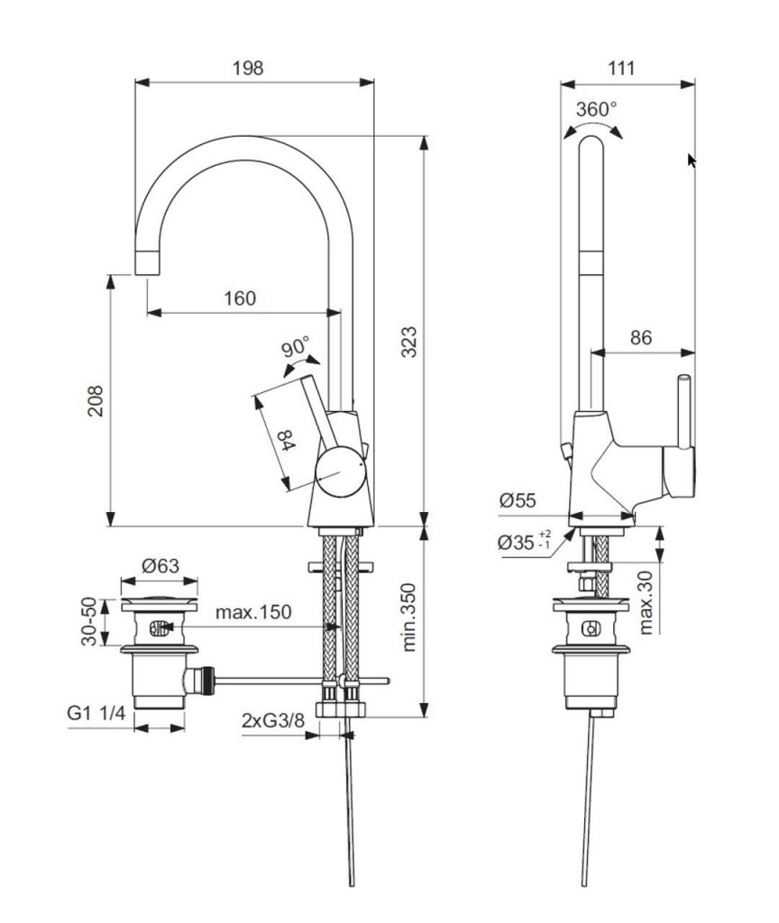 - s omezovačem průtoku bez závislosti na tlaku vody (5 l/min)
