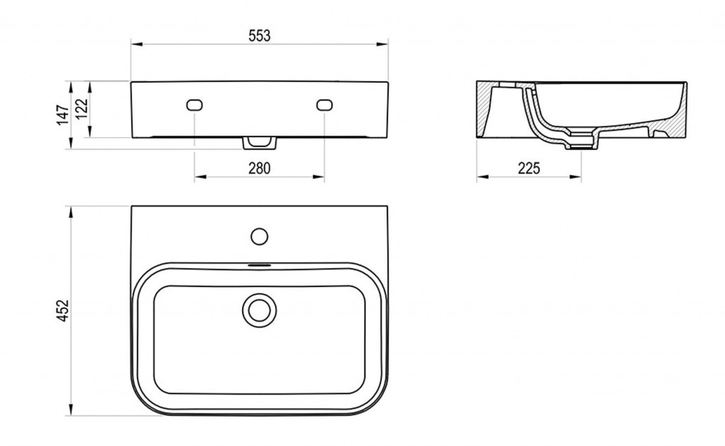 Umyvadlo Ceramic Slim Wall R 55 N