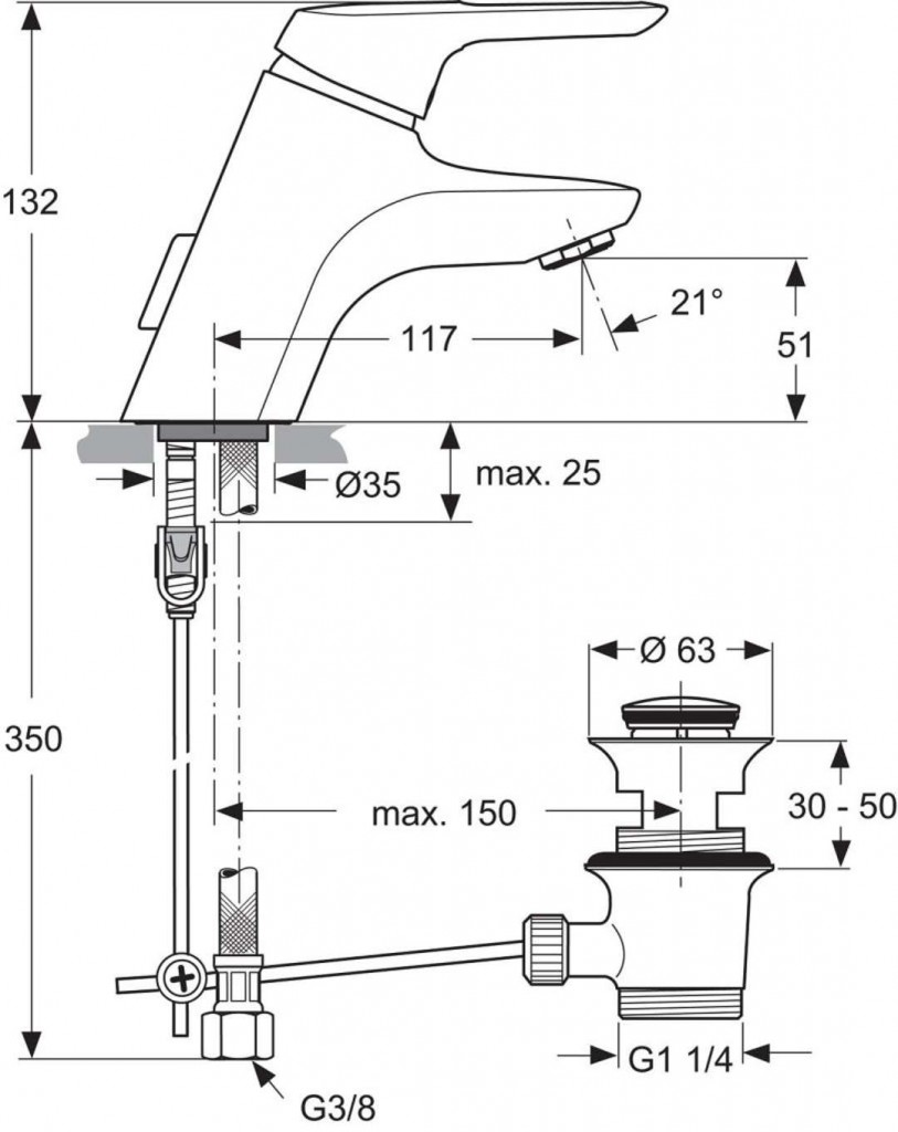 - připojení flexibilní hadice G 3/8, bez niklu a olova