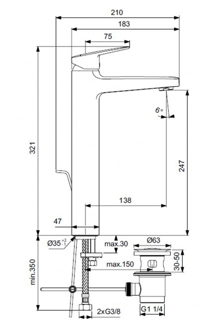 Vysoká umyvadlová baterie