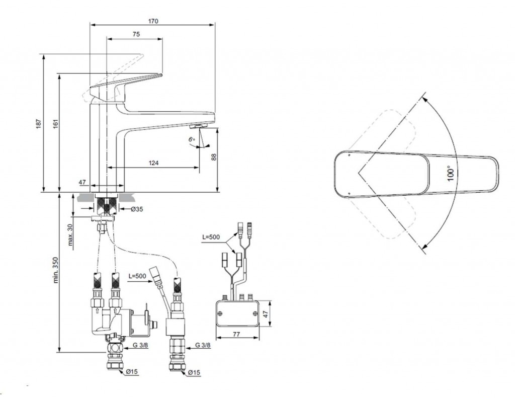 - hybridní ovládání - bezdotykové (studená voda) i klasické pákové