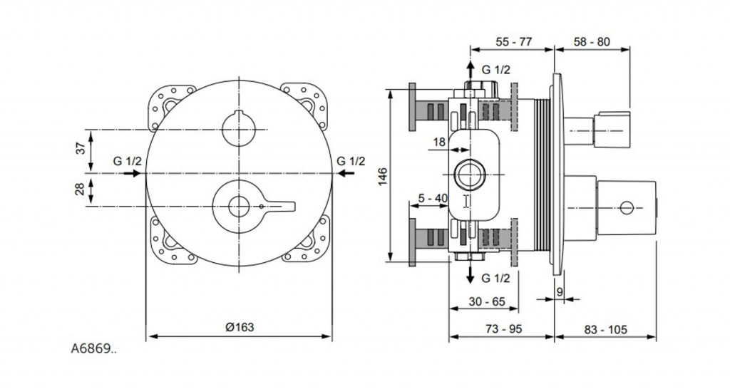 Termostatická podomítková vanová baterie bez tělesa