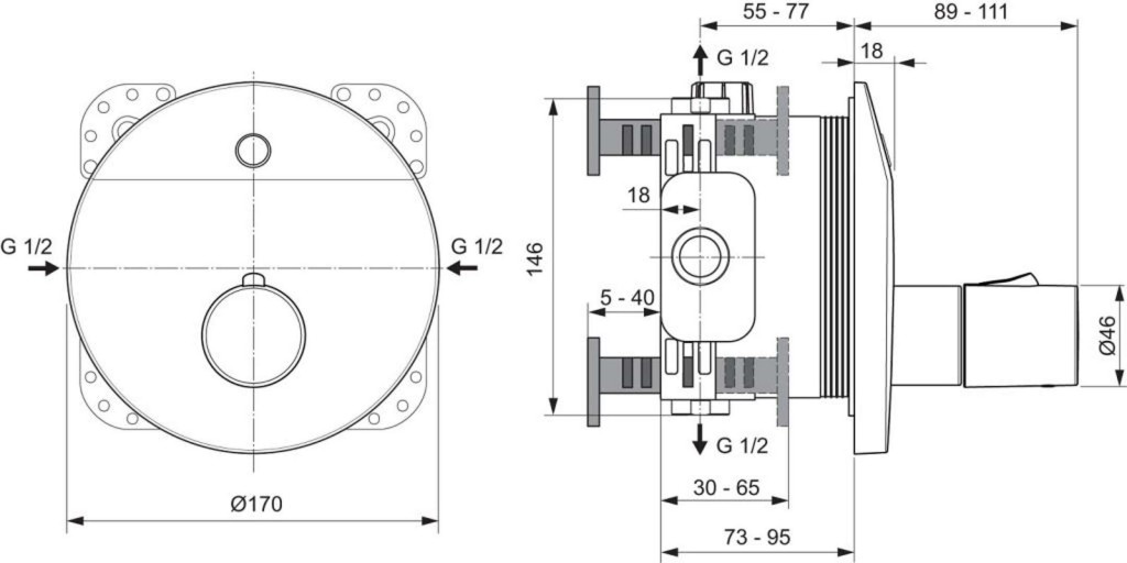 CeraPlus senzorová sprchová baterie podomítková směšovací DN 15 s možností regulace teploty vody na těle baterie.