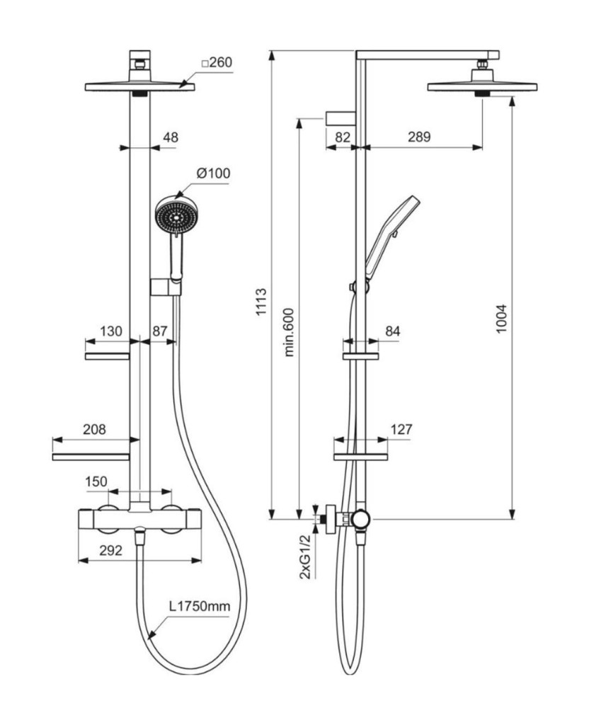 - profil konstrukce umožňující umístění držáku sprchy a polic vlevo a vpravo dle výběru při první instalaci
