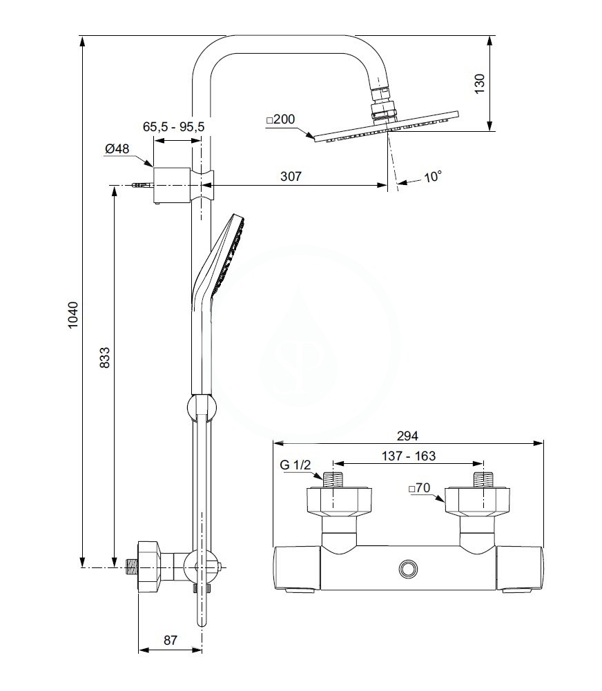 Sprchový set s nástěnnou termostatickou baterií CeraTherm 100