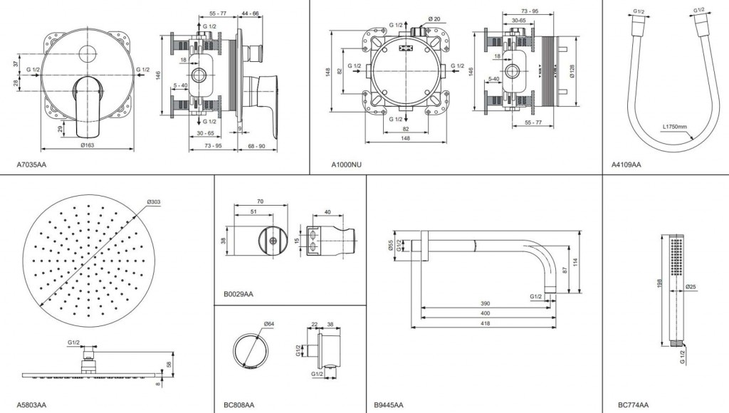 - pro předmontáž pro vanové, sprchové a termostatické baterie
