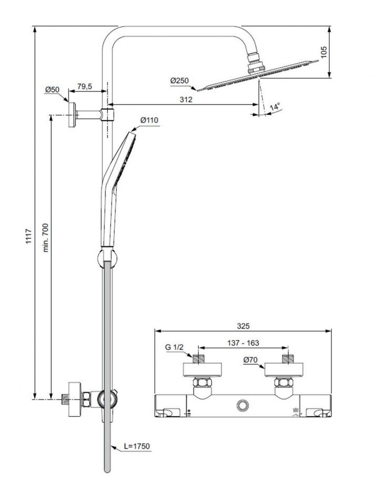 Sprchový set CeraTherm T50 obsahuje