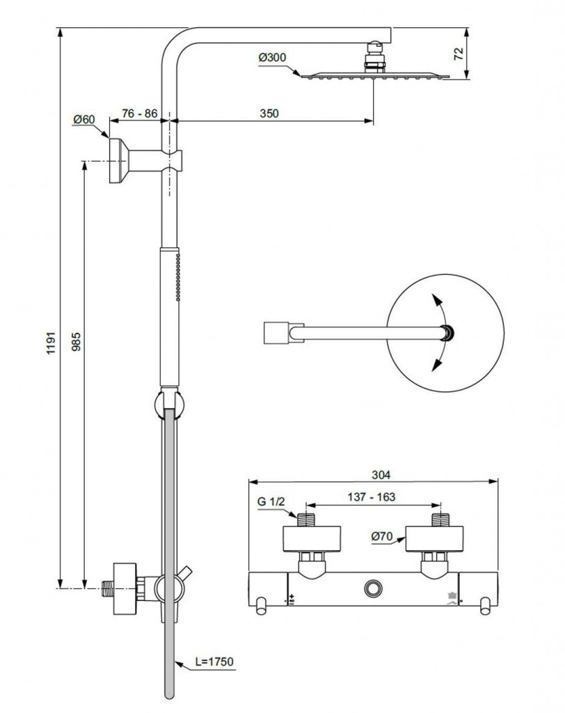 sprchovou hadici Idealflex 1750 mm, sprchovou tyč a držák sprchy