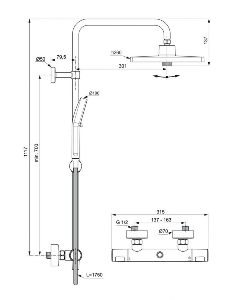 sprchovou hadici Idealflex 1750 mm BE175A2, nastavitelnou sprchovou tyč a držák sprchy