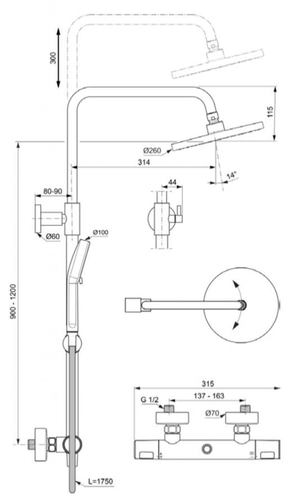 - s výškově nastavitelným držákem ruční sprchy
