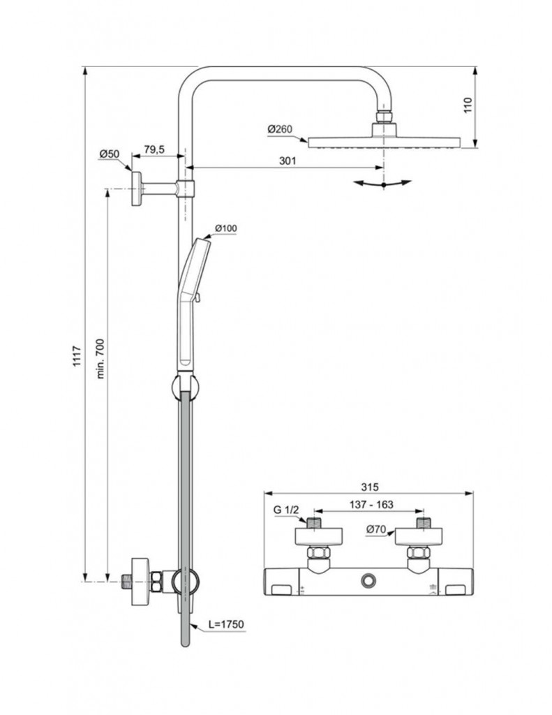 Sprchový systém s termostatickou sprchovou baterií T25N