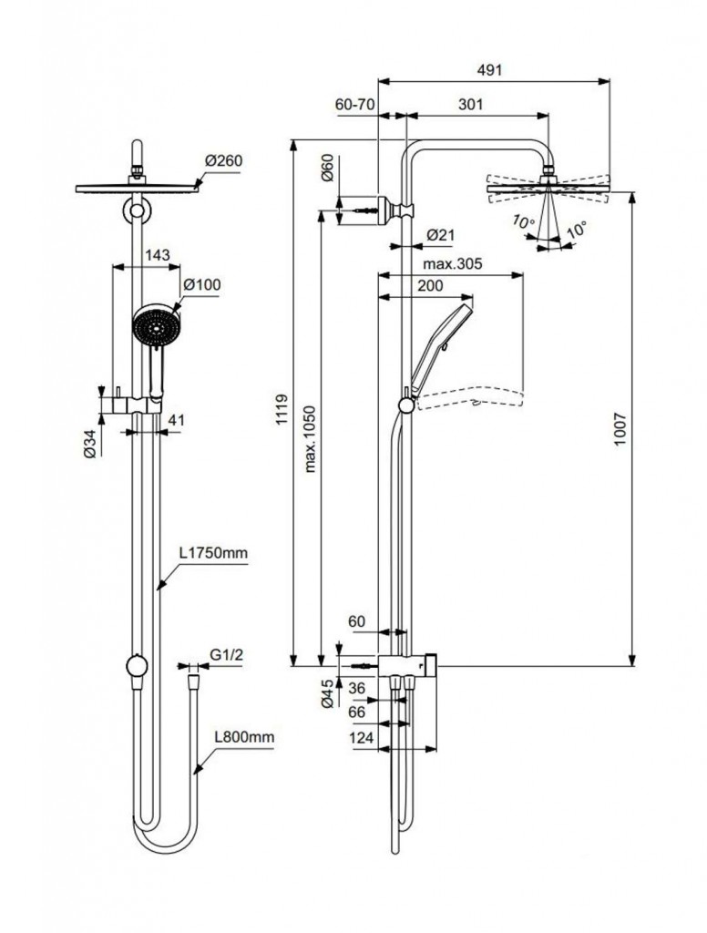Sprchový systém pro kombinaci s nástěnnou baterií T25N