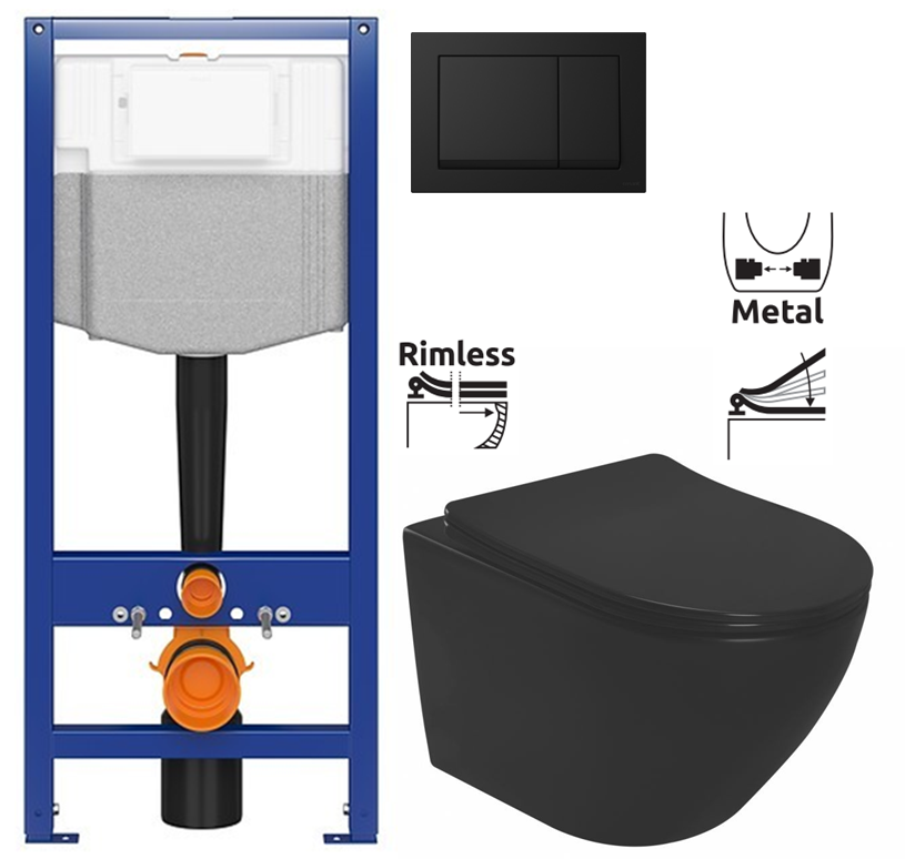 Závěsná WC mísa RIMLESS Carlo Mini Slim černá matná (REA-C8489)