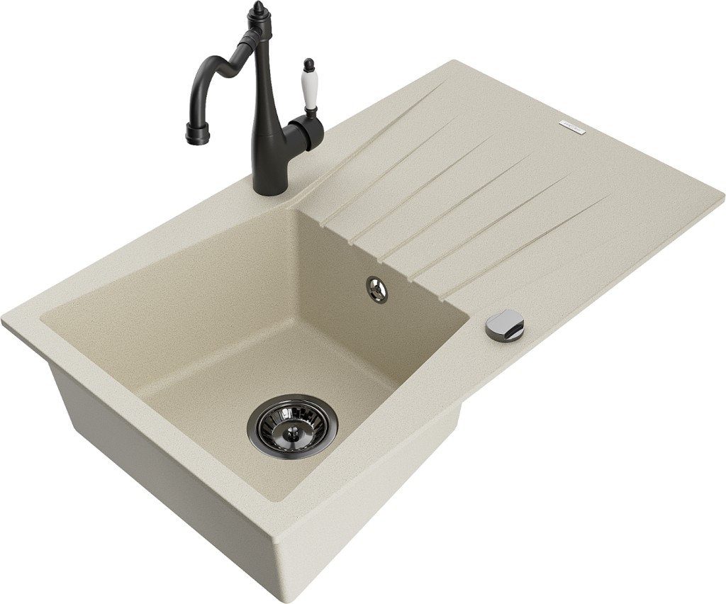 Speciální složení materiálu použitého pro výrobu je žula (80% žula – kámen, 20% pryskyřice) a jeho vysoká hustota garantuje bezpečné používání výrobku, a proto jsou granitové dřezy tak oblíbené. Díky povrchové úpravě nejsou na granitovém dřezu vidět zaschlé kapky, je odolný vůči skvrnám a neztrácí barvu. Povrch je odolný vůči nárazu, poškrábání, změně barvy, vysoké teplotě a teplotním šokům. Při jejich údržbě se používají obvyklé čistící, prostředky nebo prostředky na nádobí s jemným abrasivem. Výhodou je rozmanitá barevná nabídka.