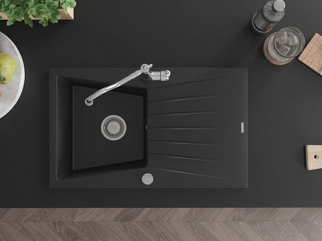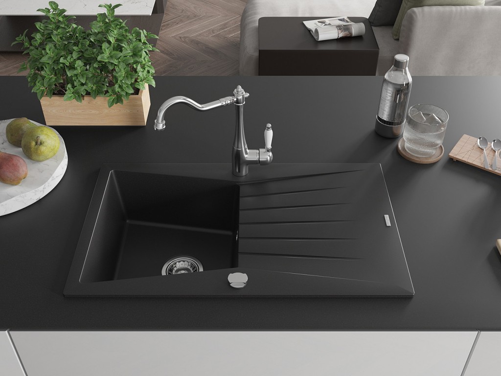 Speciální složení materiálu použitého pro výrobu je žula (80% žula – kámen, 20% pryskyřice) a jeho vysoká hustota garantuje bezpečné používání výrobku, a proto jsou granitové dřezy tak oblíbené. Díky povrchové úpravě nejsou na granitovém dřezu vidět zaschlé kapky, je odolný vůči skvrnám a neztrácí barvu. Povrch je odolný vůči nárazu, poškrábání, změně barvy, vysoké teplotě a teplotním šokům. Při jejich údržbě se používají obvyklé čistící, prostředky nebo prostředky na nádobí s jemným abrasivem. Výhodou je rozmanitá barevná nabídka.