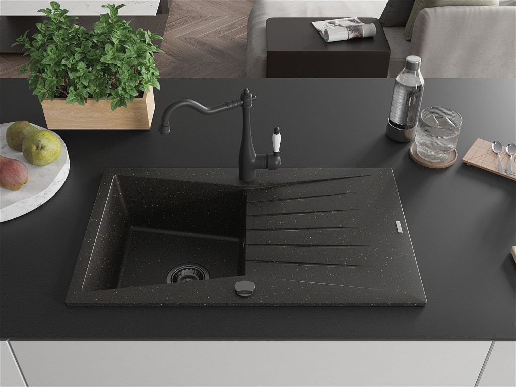 Speciální složení materiálu použitého pro výrobu je žula (80% žula – kámen, 20% pryskyřice) a jeho vysoká hustota garantuje bezpečné používání výrobku, a proto jsou granitové dřezy tak oblíbené. Díky povrchové úpravě nejsou na granitovém dřezu vidět zaschlé kapky, je odolný vůči skvrnám a neztrácí barvu. Povrch je odolný vůči nárazu, poškrábání, změně barvy, vysoké teplotě a teplotním šokům. Při jejich údržbě se používají obvyklé čistící, prostředky nebo prostředky na nádobí s jemným abrasivem. Výhodou je rozmanitá barevná nabídka.