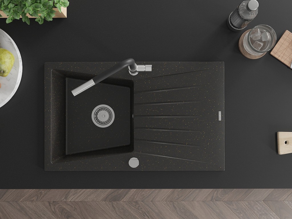 Speciální složení materiálu použitého pro výrobu je žula (80% žula – kámen, 20% pryskyřice) a jeho vysoká hustota garantuje bezpečné používání výrobku, a proto jsou granitové dřezy tak oblíbené. Díky povrchové úpravě nejsou na granitovém dřezu vidět zaschlé kapky, je odolný vůči skvrnám a neztrácí barvu. Povrch je odolný vůči nárazu, poškrábání, změně barvy, vysoké teplotě a teplotním šokům. Při jejich údržbě se používají obvyklé čistící, prostředky nebo prostředky na nádobí s jemným abrasivem. Výhodou je rozmanitá barevná nabídka.