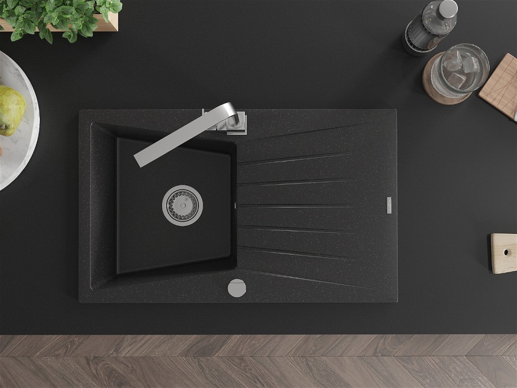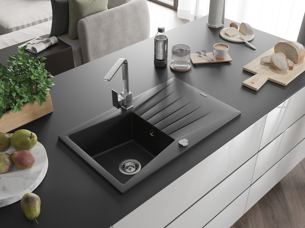 Speciální složení materiálu použitého pro výrobu je žula (80% žula – kámen, 20% pryskyřice) a jeho vysoká hustota garantuje bezpečné používání výrobku, a proto jsou granitové dřezy tak oblíbené. Díky povrchové úpravě nejsou na granitovém dřezu vidět zaschlé kapky, je odolný vůči skvrnám a neztrácí barvu. Povrch je odolný vůči nárazu, poškrábání, změně barvy, vysoké teplotě a teplotním šokům. Při jejich údržbě se používají obvyklé čistící, prostředky nebo prostředky na nádobí s jemným abrasivem. Výhodou je rozmanitá barevná nabídka.