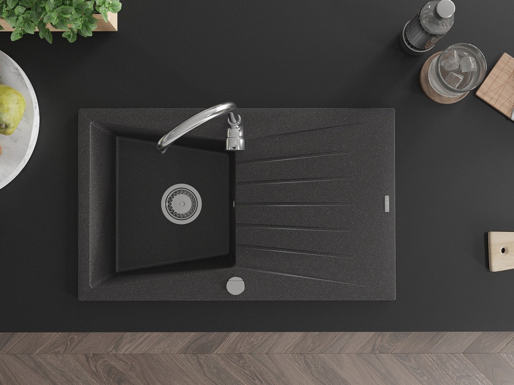 Speciální složení materiálu použitého pro výrobu je žula (80% žula – kámen, 20% pryskyřice) a jeho vysoká hustota garantuje bezpečné používání výrobku, a proto jsou granitové dřezy tak oblíbené. Díky povrchové úpravě nejsou na granitovém dřezu vidět zaschlé kapky, je odolný vůči skvrnám a neztrácí barvu. Povrch je odolný vůči nárazu, poškrábání, změně barvy, vysoké teplotě a teplotním šokům. Při jejich údržbě se používají obvyklé čistící, prostředky nebo prostředky na nádobí s jemným abrasivem. Výhodou je rozmanitá barevná nabídka.