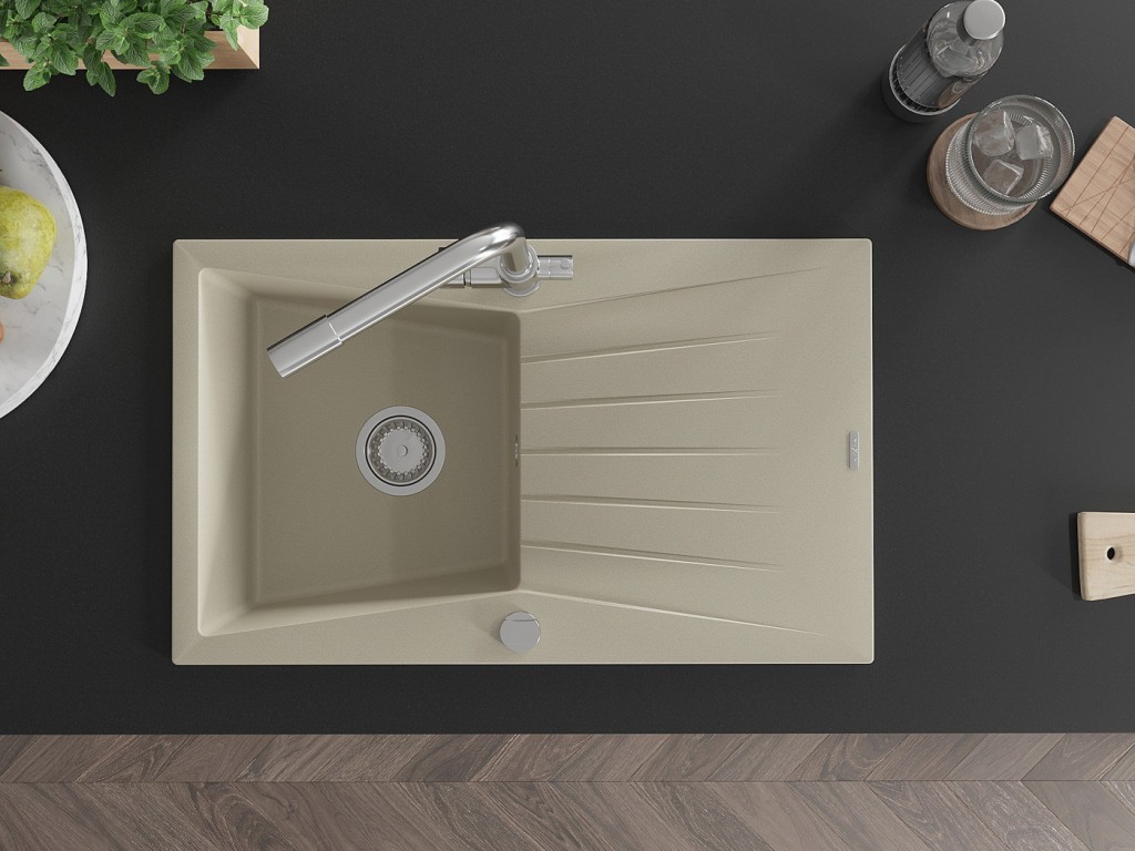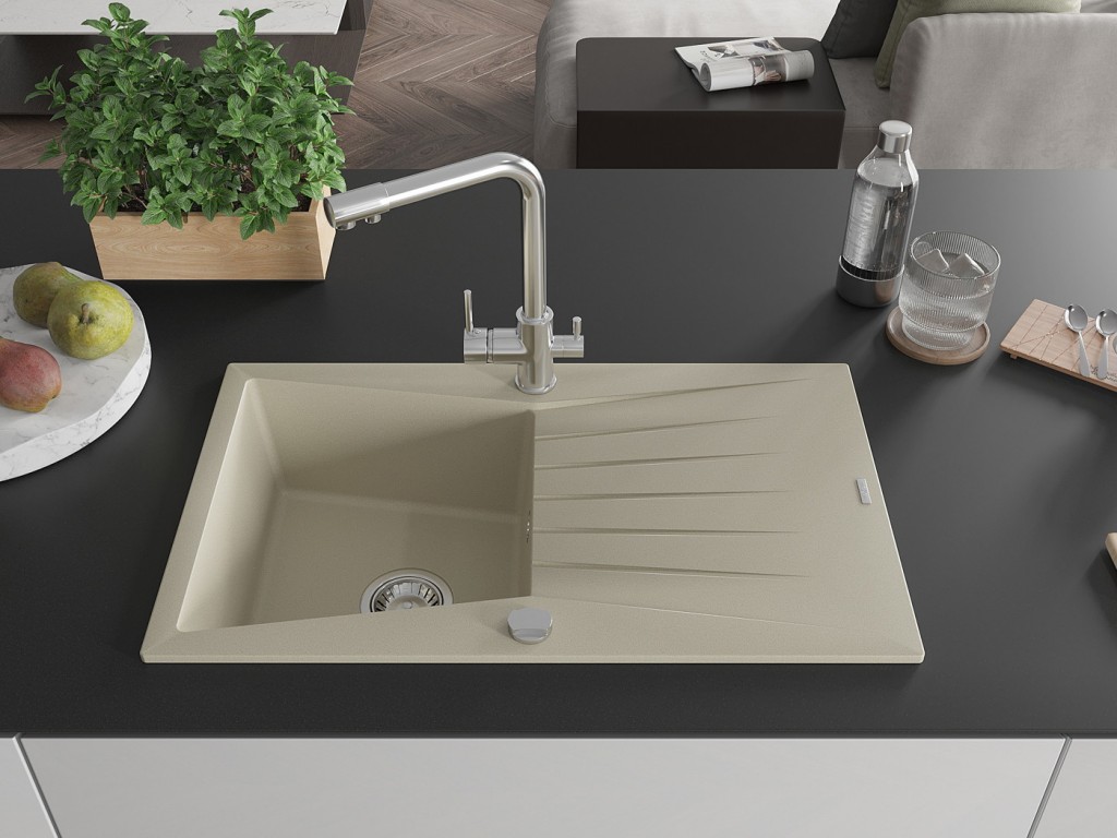 Speciální složení materiálu použitého pro výrobu je žula (80% žula – kámen, 20% pryskyřice) a jeho vysoká hustota garantuje bezpečné používání výrobku, a proto jsou granitové dřezy tak oblíbené. Díky povrchové úpravě nejsou na granitovém dřezu vidět zaschlé kapky, je odolný vůči skvrnám a neztrácí barvu. Povrch je odolný vůči nárazu, poškrábání, změně barvy, vysoké teplotě a teplotním šokům. Při jejich údržbě se používají obvyklé čistící, prostředky nebo prostředky na nádobí s jemným abrasivem. Výhodou je rozmanitá barevná nabídka.