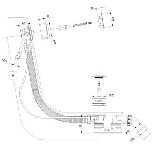 • určeno pro vany s průměrem odtoku ø5,2 cm