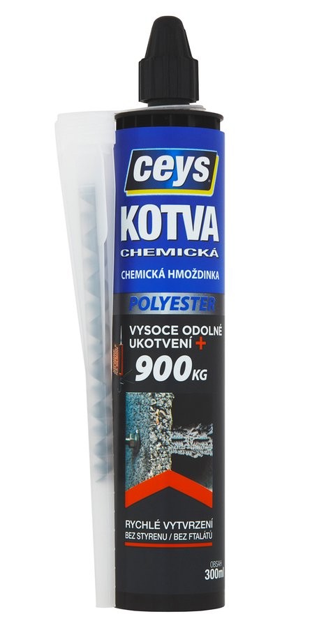 Dvousložkový tmel, který zabezpečí extrémně odolné zakotvení do dutých, křehkých nebo pevných materiálů. Tvrdne během 6 minut bez rozpínání, proto je ideální na ukotvování, kde hrozí riziko prasknutí povrchu. Je určen pro připevnění a zakotvení šroubů, čepů, dříků, železných konstrukcí, atd. Umožňuje aplikace v blízkosti kraje plochy. Odolnost 900 kg (upevnění M12). Bez styrenu a ftalátů.
