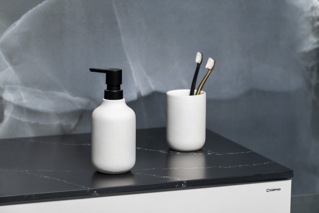 Kolekce koupelnových doplňků CHLOÉ je na pohled jednoduchá, ale okouzlující. Keramika v matně bílém provedení v kombinaci s černými prvky je napříč časem sázkou na jistotu.