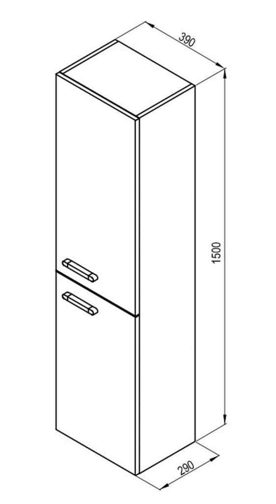Skříňka SB 390 Chrome má dveře rozděleny na horní a dolní část v poměru 2/3 a 1/3. Horní část má dvě skleněné poličky, dolní část má jednu. Dodáváno ve smontovaném stavu.