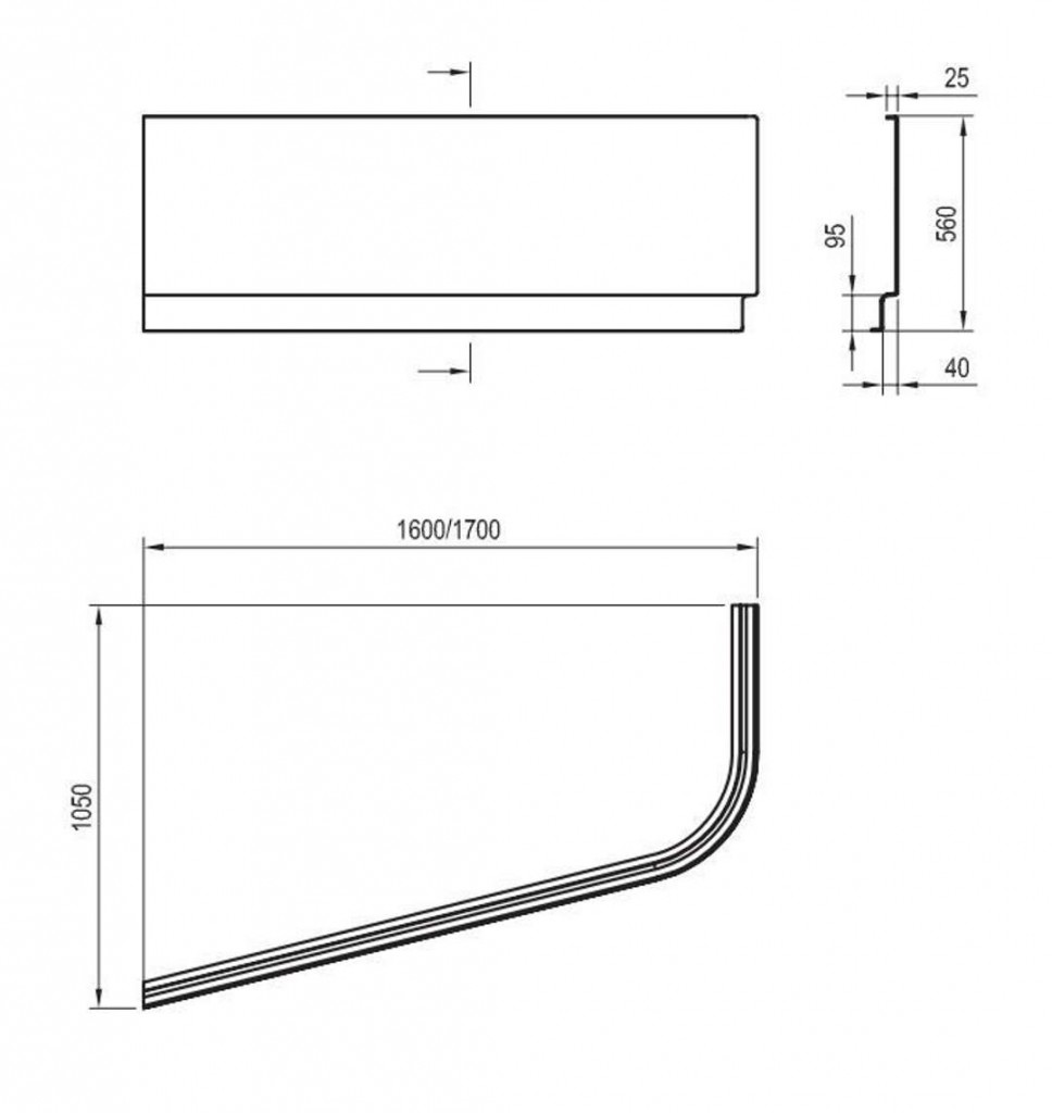 - rozměry: 1700 x 1050 mm, výška: 560 mm