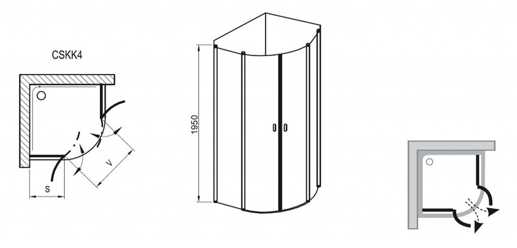 - instalace: do obloženého rohu koupelny na sprchovou vaničku nebo přímo na podlahu se zabudovaným odtokovým žlabem či podlahovou vpustí