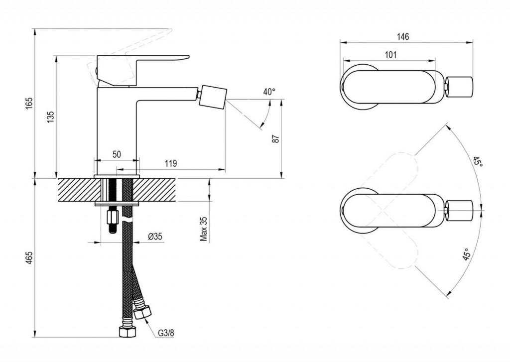 Bidetová baterie CR II 056.00CR, bez výpusti