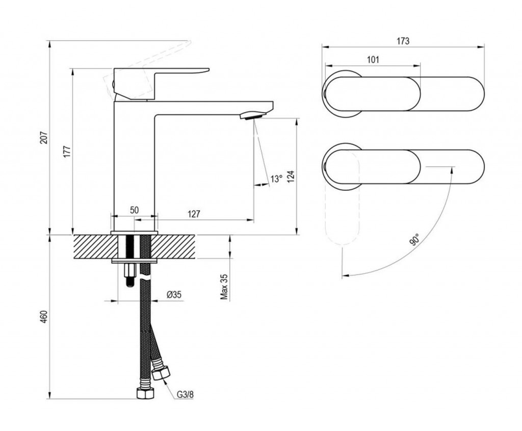 Umyvadlová baterie CR II 014.01CR, bez výpusti