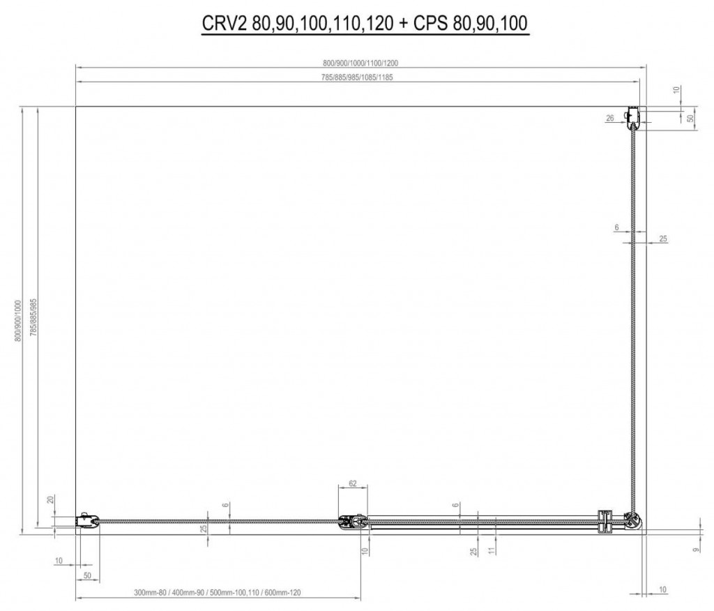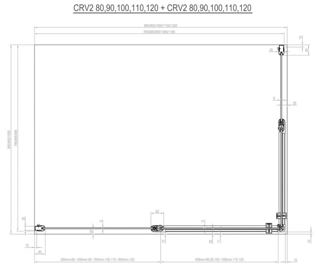 Pro vytvoření rohového sprchového koutu je třeba objednat 2 kusy výrobku CRV2.