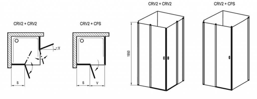 Pro vytvoření rohového sprchového koutu je třeba objednat 2 kusy výrobku CRV2.