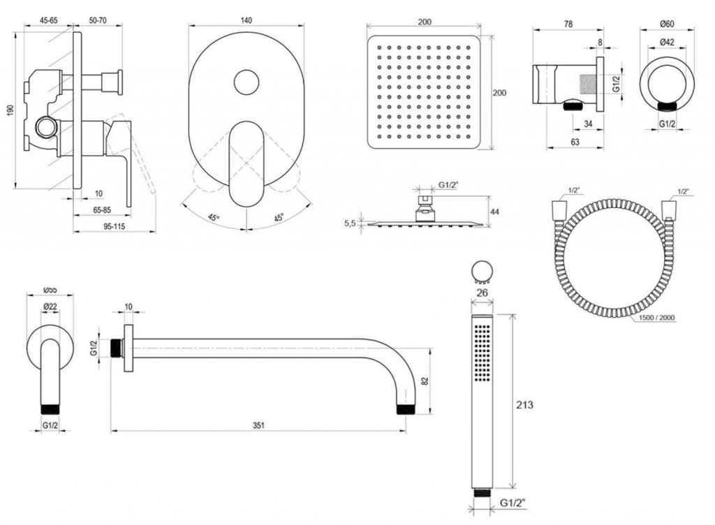 Sprchový podomítkový set CR 090.01CR obsahuje