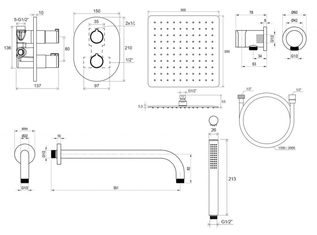 Sprchový podomítkový set CR 090.02CR obsahuje