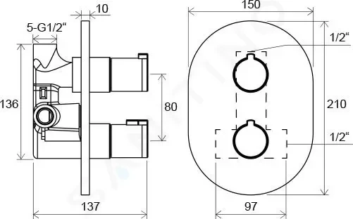 Termostatická sprchová baterie pod omítku, bez přepínače