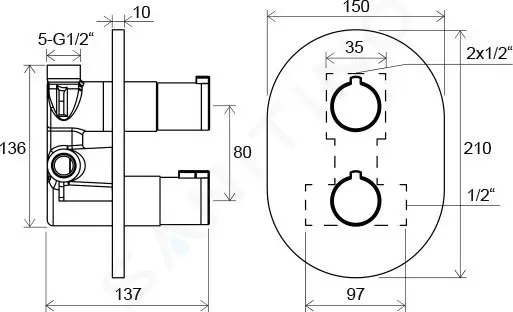 Termostatickou podomítkovou baterii lze kombinovat s dalším příslušenstvím RAVAK. Na vnější čištění doporučujeme používat přípravek RAVAK Cleaner Chrome.