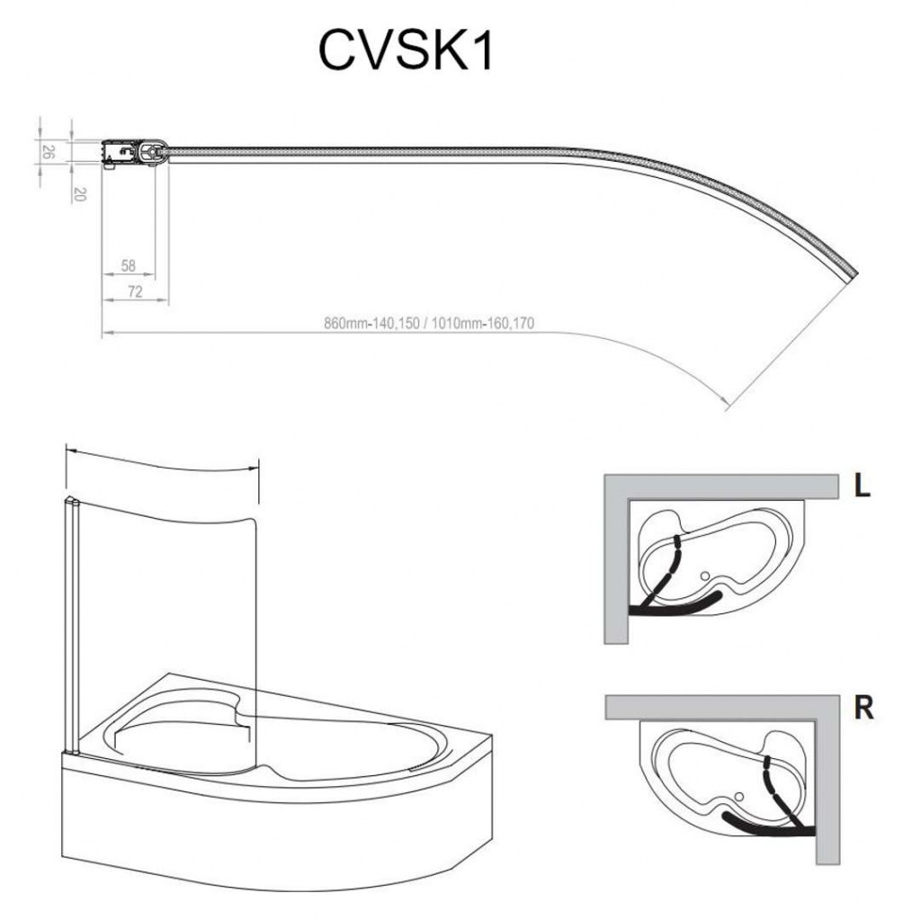 Zástěnu CVSK1 je nutné naplánovat podle provedení a rozměrů dané vany.