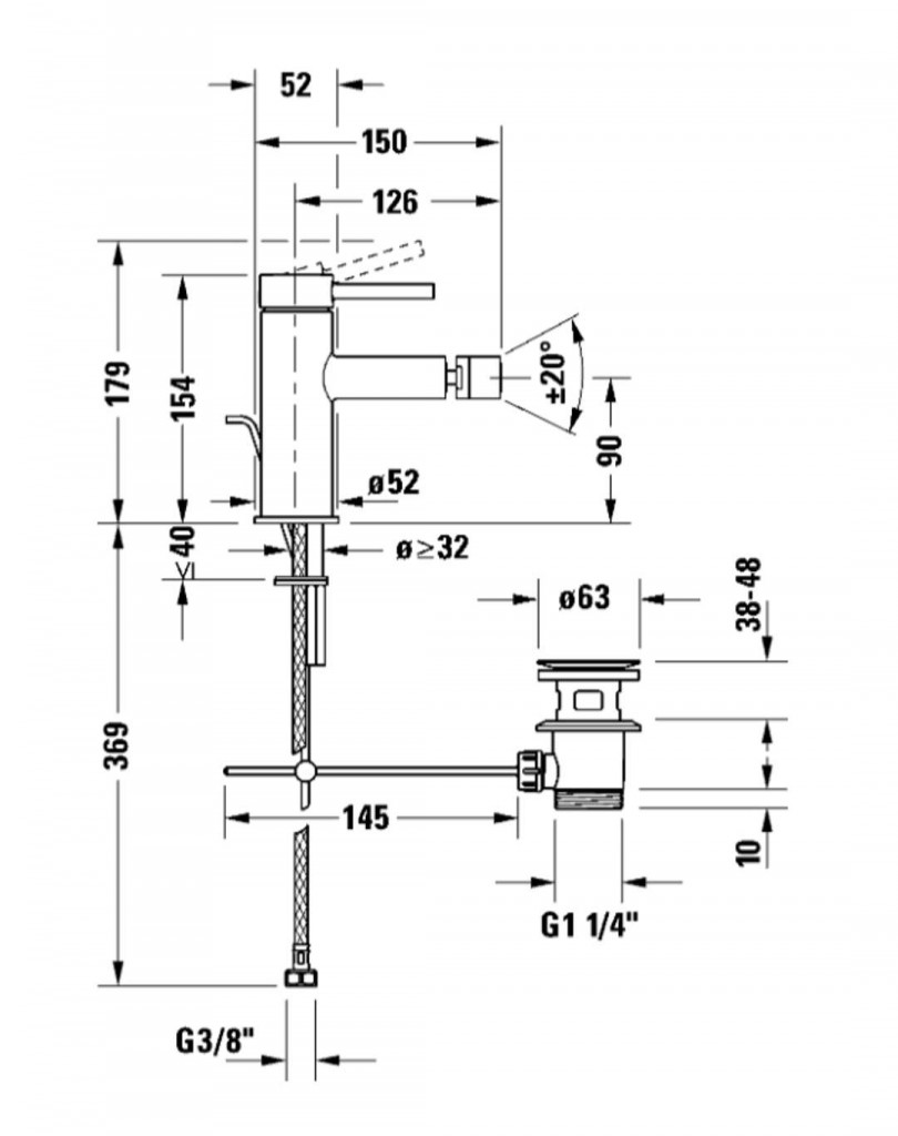 Stojánková bidetová baterie s výpustí