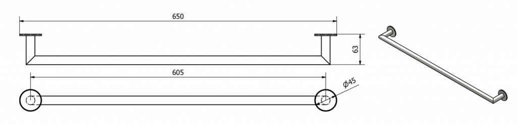 Držák ručníků se nalepí na vnější rovnou stranu sprchové zástěny (minimální rozměr zástěny 800 mm).