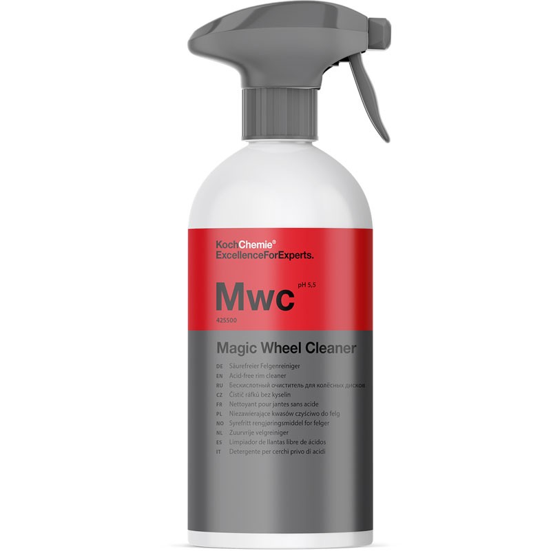 Popis přípravku: Magic Wheel Cleaner je účinný, viskózní čistič ráfků bez obsahu kyselin s inovativním účinkem pro jemné a důkladné čištění ráfků. Jeho reaktivní složka uvolňuje železné částice s charakteristickým indikátorem výkonosti ( červeným zabarvením ). Zvláštní dispergační činidlo uvolňuje z povrchu šetrně i silná znečištění. Viskozita prostředku zaručuje, že nastříkaný Magic Wheel Cleaner velice dobře ulpí na povrchu. Při delší době působení váže nečistoty a nezasychá.