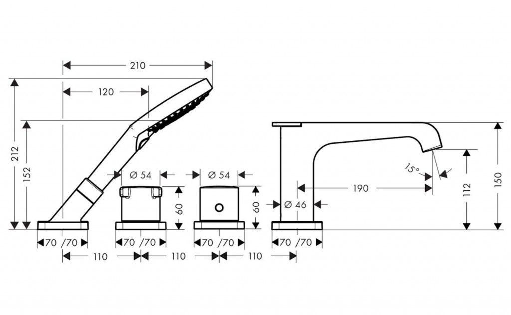 - průtok ruční sprchy při 3 barech: 14 l/min