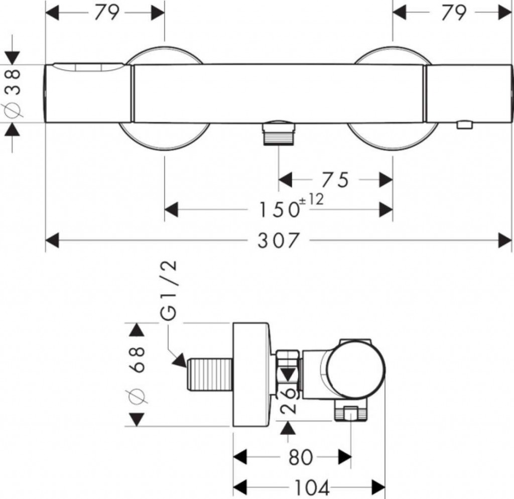 Nástěnná termostatická sprchová baterie
